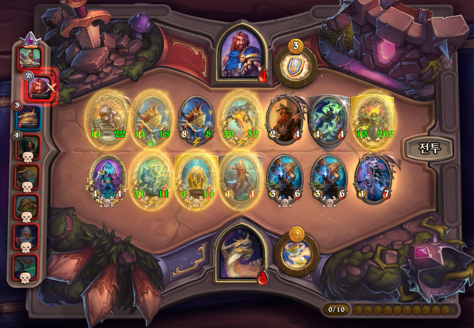 상대도 만만치 않았는데, 다행히 순서대로 싸워 상대에게 16데미지를 주었습니다. 이번턴에 무조건 보냈어야 했는데 아쉬웠습니다.