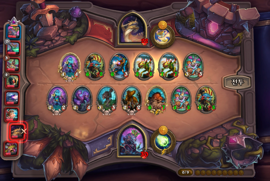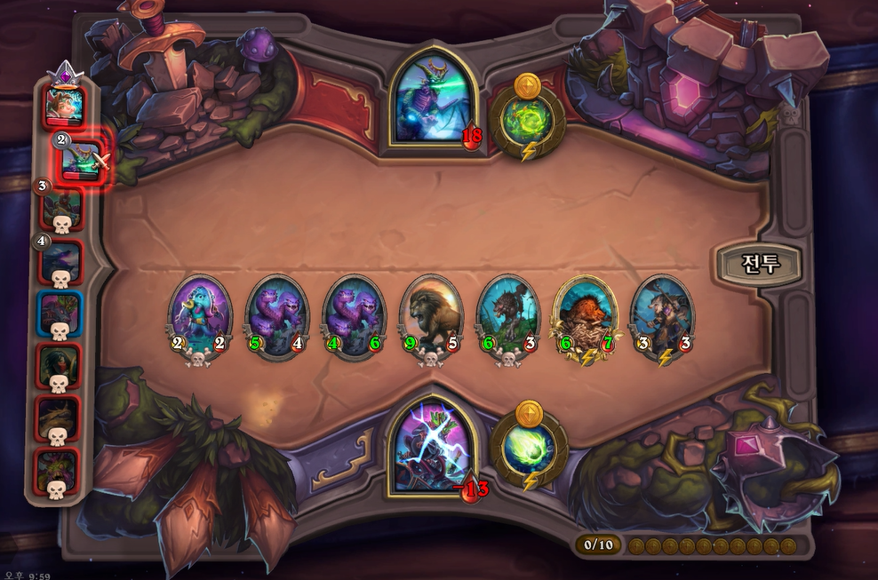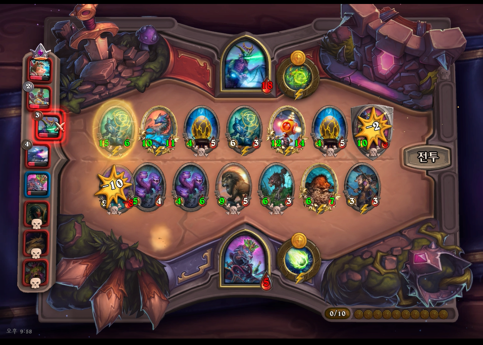9턴 하수인상점에서는 야수를 찾아보았으나 쉽게 뜨지 않았습니다. 이번턴까지는 체력 여유가 있어 살수 있지만 다음턴에 죽을 것 같습니다.