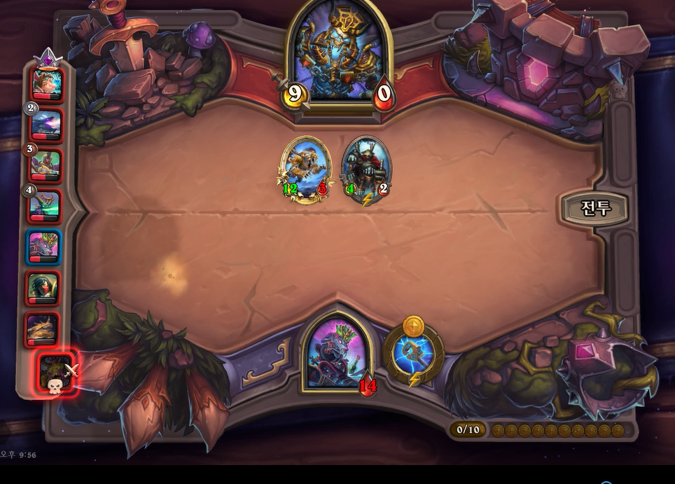 8턴 전투는 상대가 코발트수호자, 부릉이를 가지고 있기 때문에 졌습니다. 7데미지를 받아 그나마 다행입니디ㅏ.