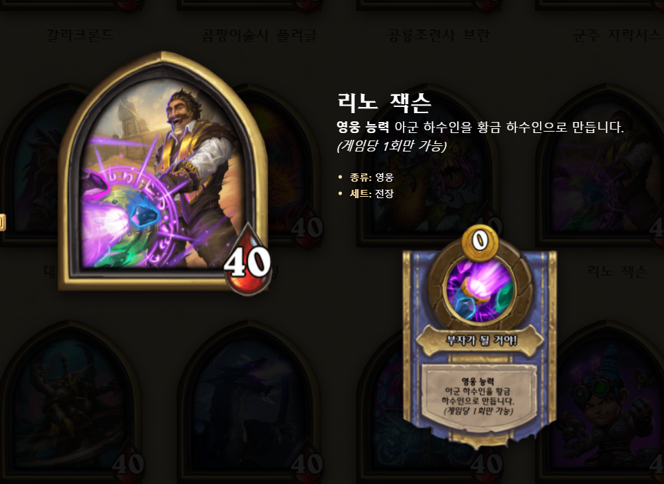 이렇게 해서 패치 후 리노 잭슨을 플레이해 보았는데, 재미도 있고, 예전보다는 좋은 5성 카드들이 많아 B+ 영웅은 되지 않나 생각이 듭니다.