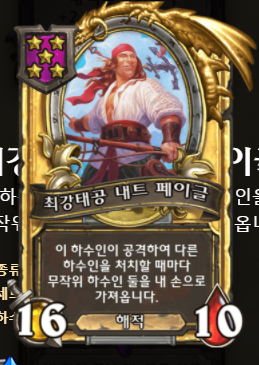 칼렉고스(용 덱)는 6 성이기 때문에 솔직히 황금 카드를 만들 상황이 생각보다는 어려울 것 같아 뺐습니다. 그리고 최근 멀록 덱이 너프를 받았지만, 여전히 전체 버프는 강력하고, 완성 용덱만 아니면 충분히 1등을 노릴 수 있어 황금 브란이 뜨면 멀록 덱 전환도 생각해보시기 바랍니다. 그리고 너무 체력이 안 좋으면 내트 페이글, 영혼 곡예사 같은 하수인에게 영웅 능력을 사용하여 순위 방어하시는 방향으로 운영해주시면 됩니다. 또한 이번에 내트 페이글의 필드 개입력이 이전보다 떨어졌지만 어제 플레이를 하면서 나름 가능성을 봤습니다.ㅎㅎ; 황금을 띄울 경우 2장을 가져오기 때문에 많은 이득을 볼 수 있었습니다.