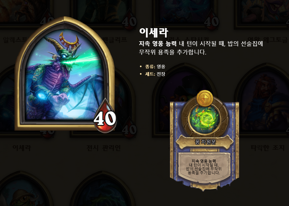 안녕하세요! 검은 너구리입니다. 오늘은 8등을 했지만 이세라에 대한 운영 및 공략을 써보려고 합니다. 순위 방어를 못했어도 무엇이 패배 요인인지 보여주면서 리뷰하는 것도 좋을 것 같다고 생각합니다. 이번 패치로 이세라의 영웅 능력이 패시브가 되면서 이전보다 티어는 올라갔다고 생각합니다. 초반 1성 용족 하수인 페어를 맞추기 편해 이득을 많이 볼 수 있습니다. 다만 추가되는 용족이 좋지 못하면 한번에 큰 데미지를 입기 쉬웠습니다. 그래도 용족 하수인이 상점에 매턴 추가되기 때문에 잘 풀리면 순위방어가 용이하다고 생각합니다.