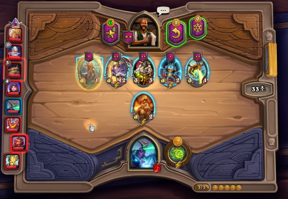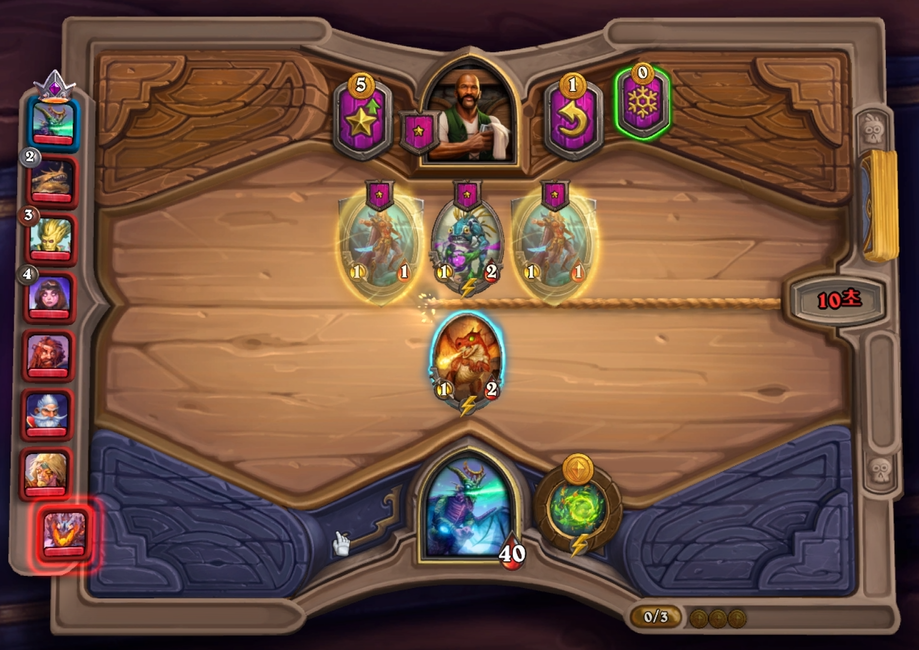1 턴 하수인 상점입니다. 토큰 시작을 못했기 때문에 새끼 붉은 용을 구매했습니다.