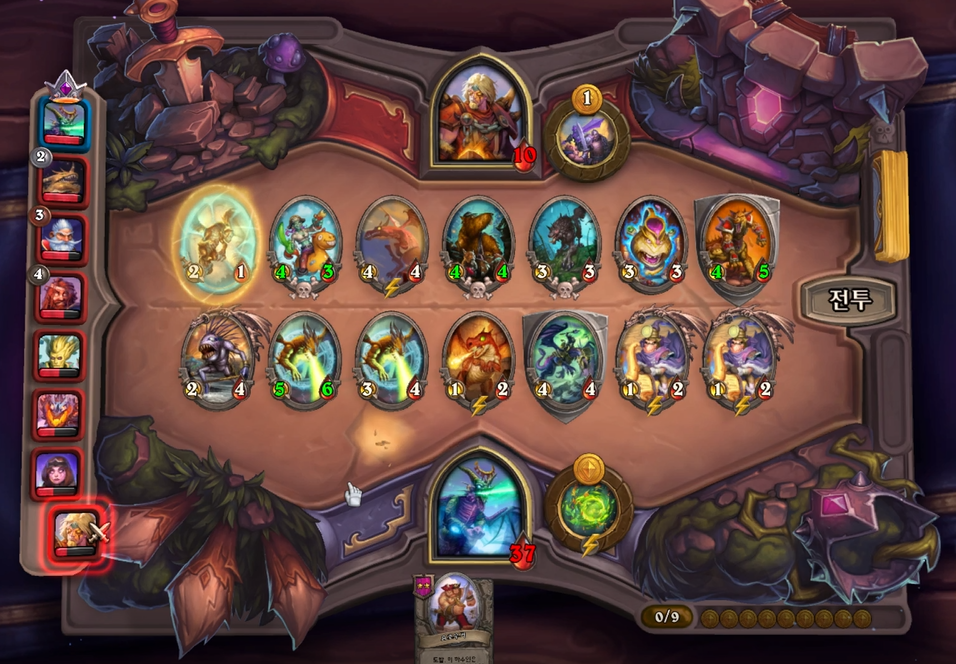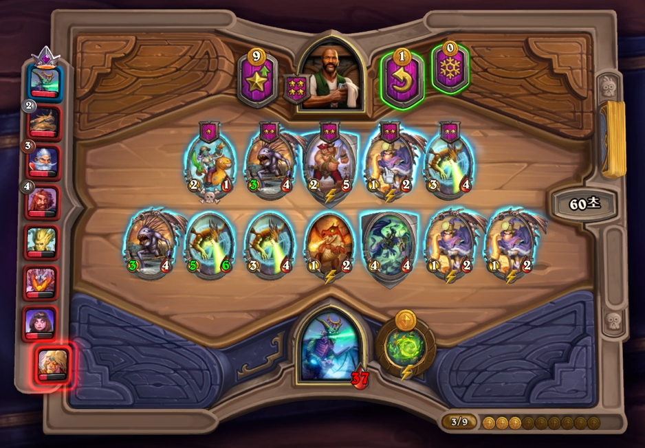 9 턴 하수인 상점입니다. 아쉽게 칼렉고스나 나디나가 나오지 않았네요.. 그렇지만 충분히 강력하고, 성장 가능성이 높기 때문에 여전히 좋은 상황입니다.