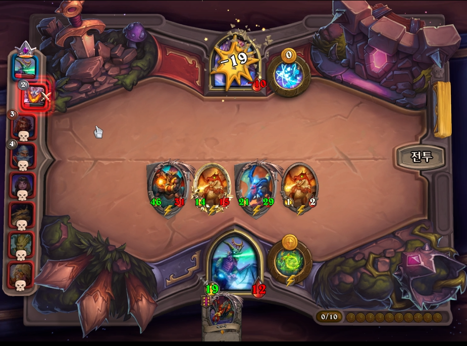 2 턴 하수인과 같이 토큰이 없기 때문에 얼리지 않고, 레벨 업하고 넘겼습니다.