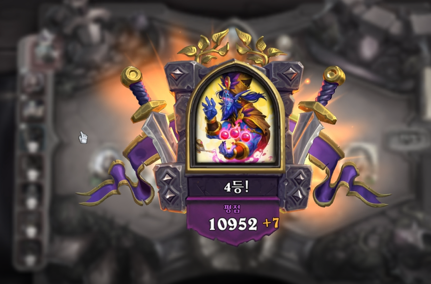 아쉽게 4등을 차지했지만, 제피르스로 4등이면 나름 만족스럽다고 생각합니다^^; 2달안에 개인적으로는 버프가 될 것으로 생각하고 있기 때문에 아직은 이 영웅을 플레이 안하기를 추천드립니다ㅎㅎ; 오랜만에 글을 쓰니 손가락이 굳었는지 글이 잘 써지지 않네요. 작문 능력을 좀 더 길러서 더 좋은 포스팅을 쓰려고 노력하겠습니다. 그럼 이상으로 포스팅 마치겠습니다.