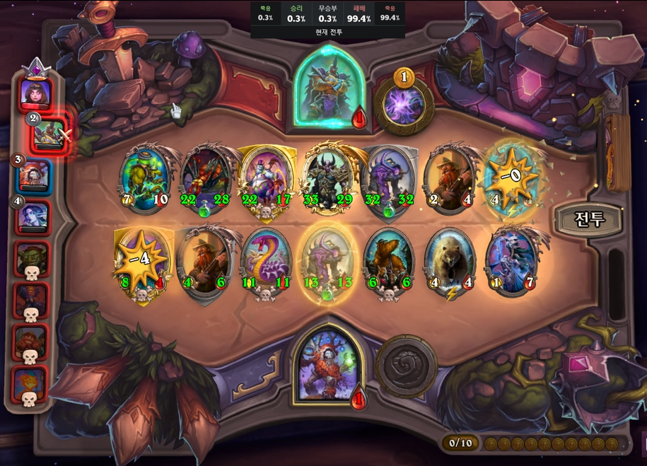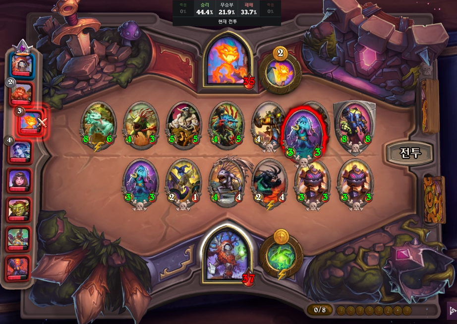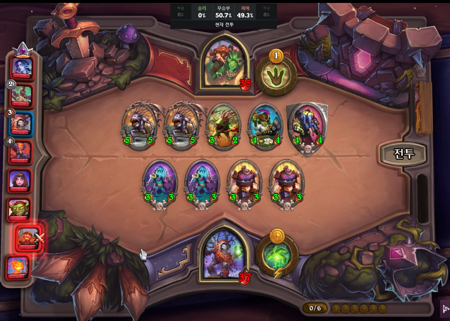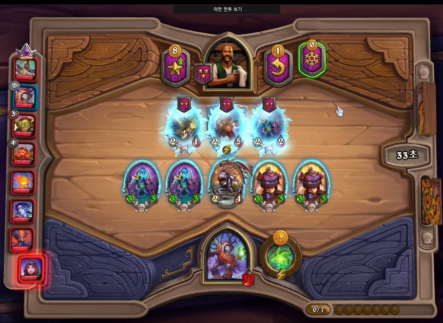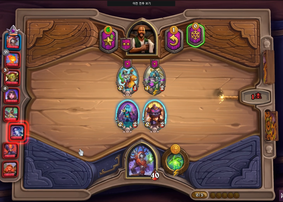 1 턴 하수인 상점입니다. 2/3 멀록을 구매했습니다. 참고로 정령, 용족이 밴이었고, 1,2 턴 전투 및 상점은 생략하겠습니다.