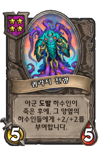 그리고 잿빛가지는 3~4성 하수인들이 핵심이다 보니 보통 6~10 턴에 전성기를 맞이할 수 있습니다.(소위 날먹 플레이라고 하죠ㅎㅎ;). 쥐떼, 기계 알, 청동 감시자 같은 하수인 + 퀴라지 전령, 제국의 무장, 카드가 등을 섞어주면 5 레벨 , 6 레벨을 부담 없이 찍을 수 있습니다. 특히 퀴라지 전령이 핵심인데, 죽음의 메아리 혹은 환생이 나온 하수인이 죽으면서 내 필드에 +4/+4 버프를 남기기 때문에 질 것 같은 확률도 이기는 경우가 굉장히 많습니다. 단, 11~12 턴부터는 상대 플레이어들도 꽤나 강력해지고, 잿빛가지 버프 의미가 사라지기 때문에 9~11 턴에 강력해져야 합니다. 그렇기 때문에 필드에 따라 다르지만, 최대한 빠른 레벨 업 운영이 중요하고, 8턴 5 레벨, 9 턴 6 레벨을 찍는 것이 괜찮다고 생각합니다.