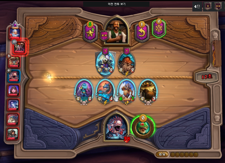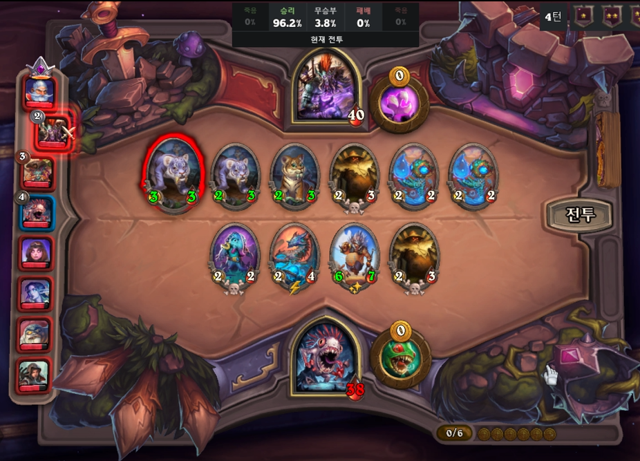 6턴 전투는 상대가 4레벨을 찍어 무난하게 승리할 수 있었습니다.