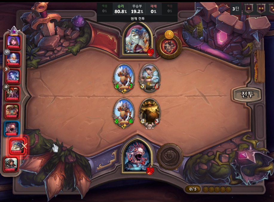 3턴 승률이 80%였는데 아쉽게 무승부를 기록했습니다.