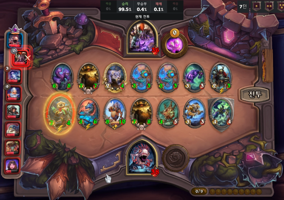 7턴 전투도 99.5%로 승리를 가져왔습니다.