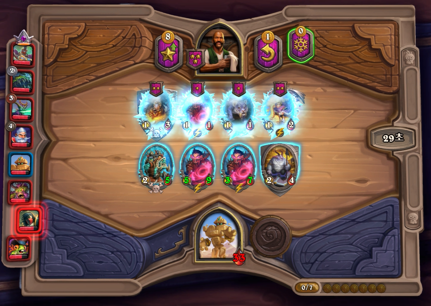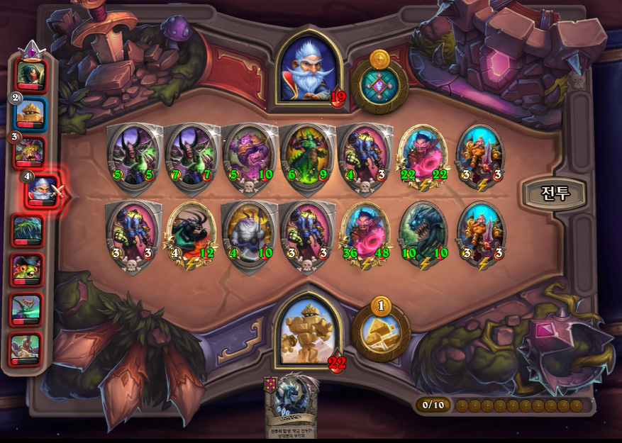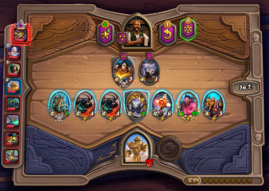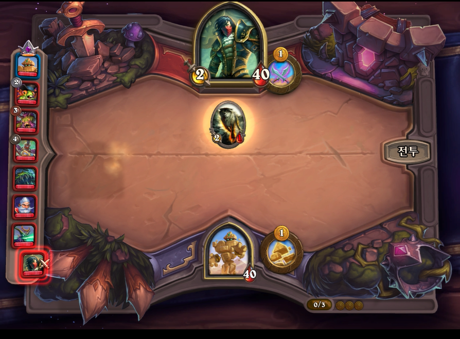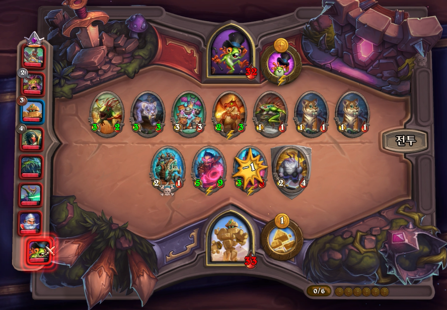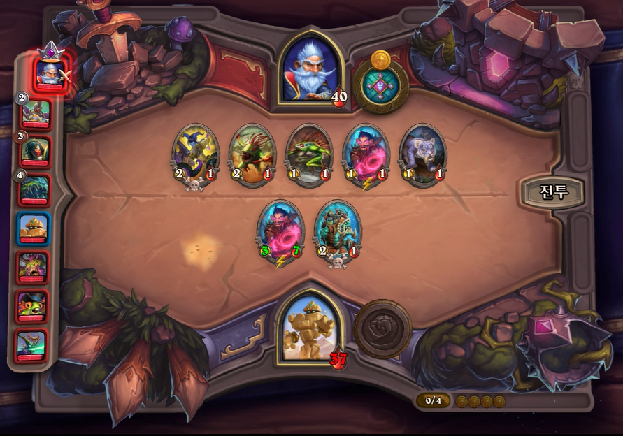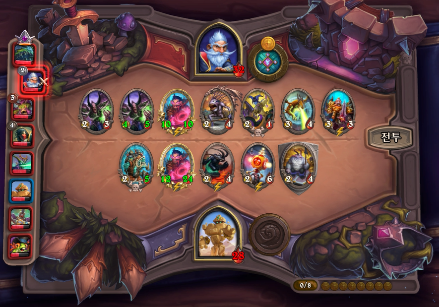 3. 1턴(3골드) 첫상점에서 초소형 기계를 구입 혹은 스텟이 좋거나 토큰 하수인 구입한 평범한 덱 운영(가급적 2턴 레벨업)
