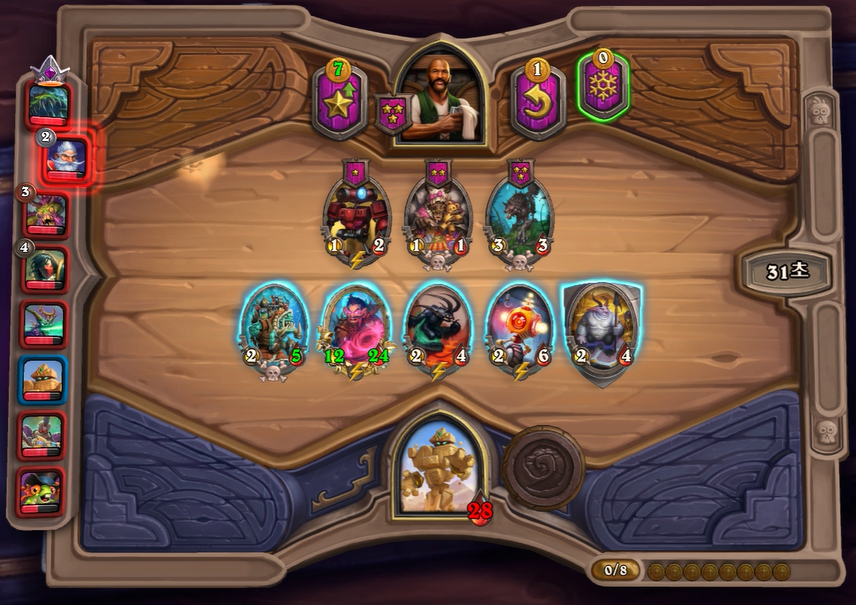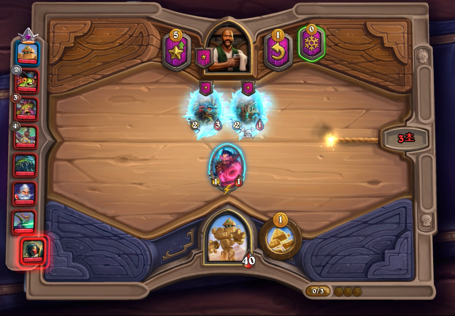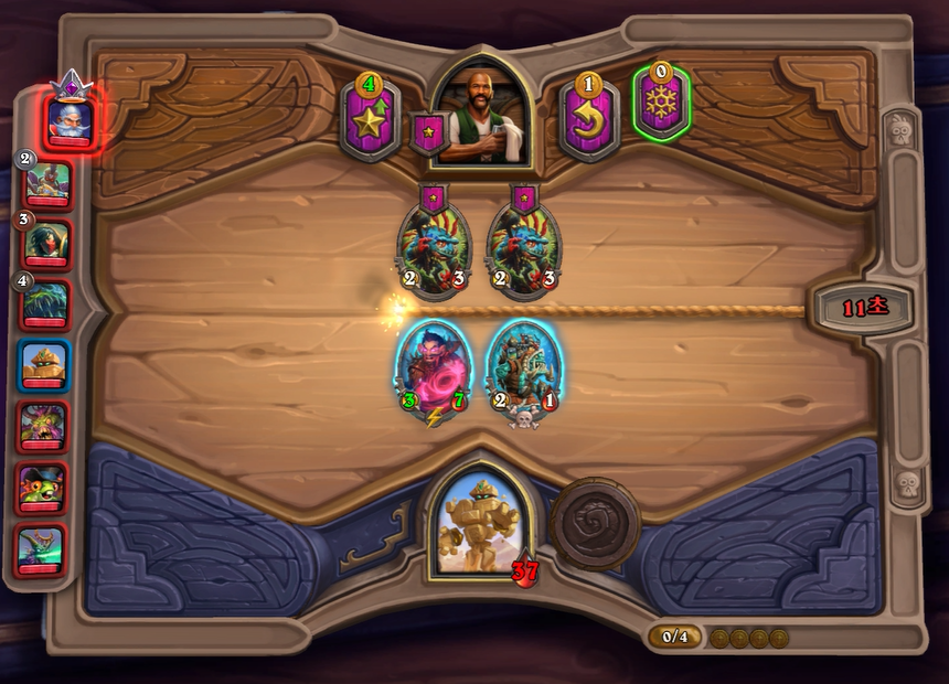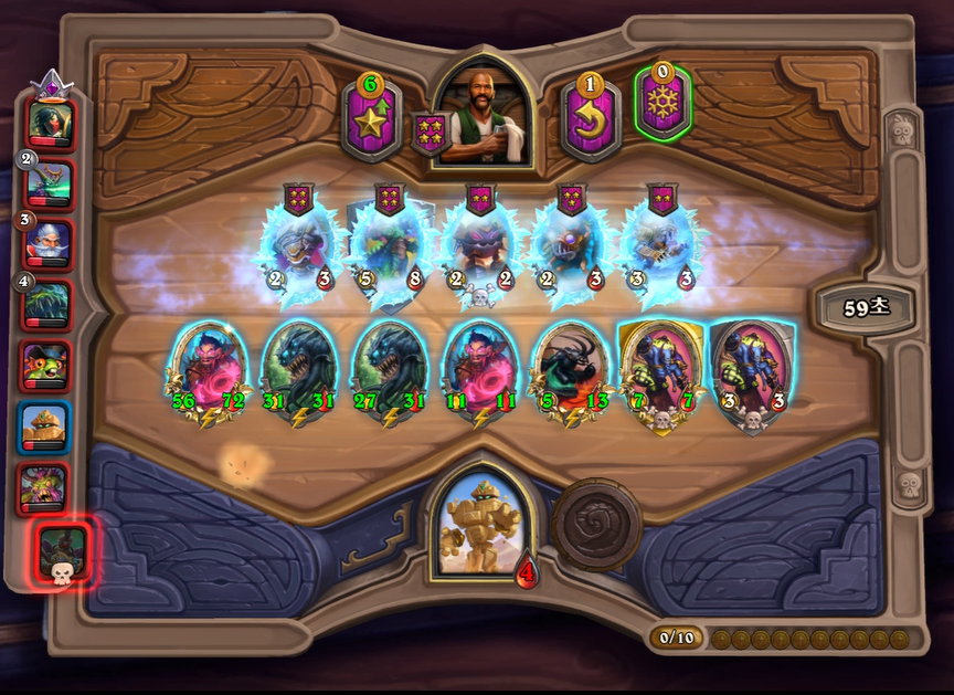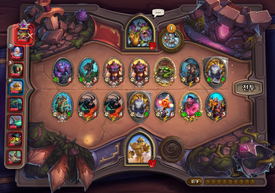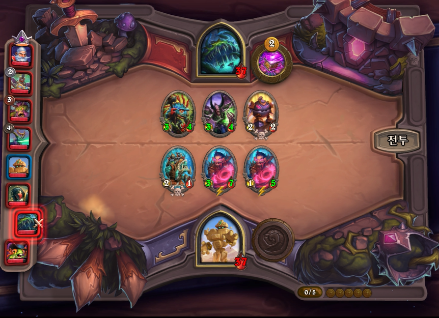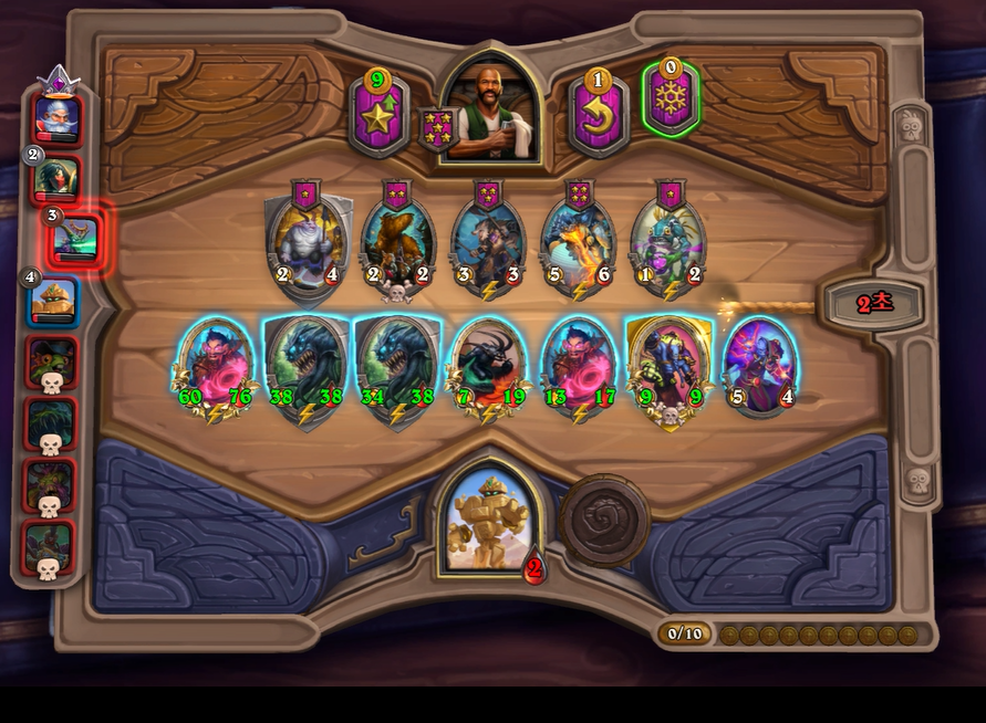 3. 1턴(3골드) 첫상점에서 초소형 기계를 구입 혹은 스텟이 좋거나 토큰 하수인 구입한 평범한 덱 운영(가급적 2턴 레벨업)