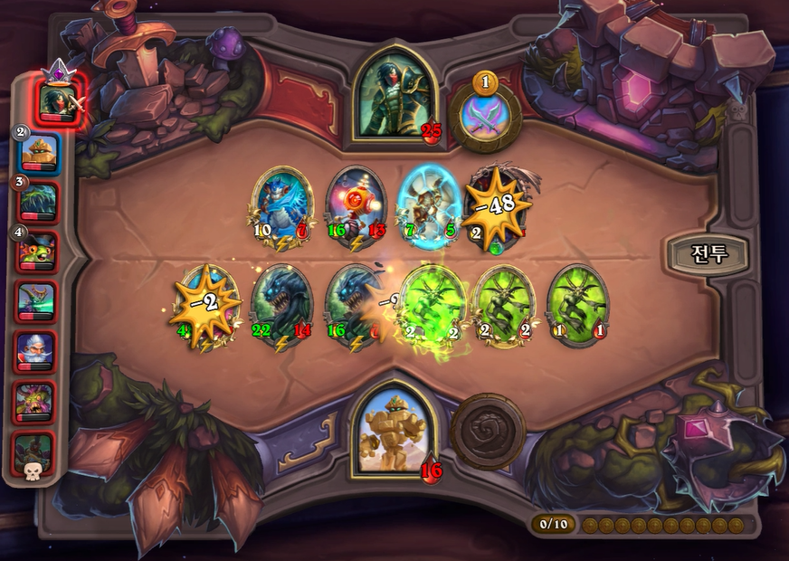 10턴 전투는 억울할정도로 맥스다가 분노의 명인을 잡으면서 졌습니다.진짜 화가 엄청 났지만 체력이 8 남았기 때문에 이악물고 플레이 했습니다.
