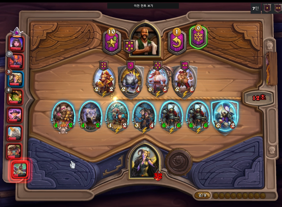 7 턴(9 골드) : 하수인 판매 후, 레벨 업 + 영웅 능력