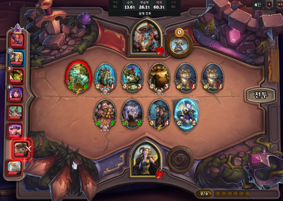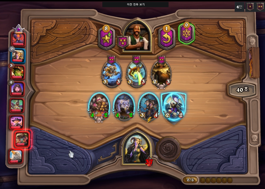 4 턴(6 골드) : 하수인 판매 후, 레벨 업 + 영웅 능력