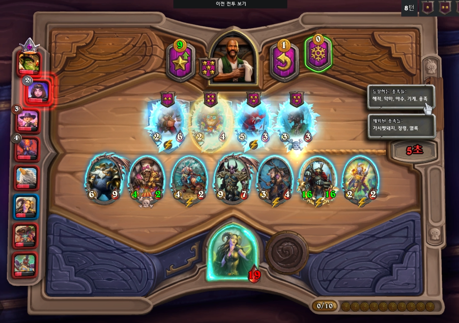 8 턴(10 골드) : 하수인 구매(덱 시너지 맞추기)