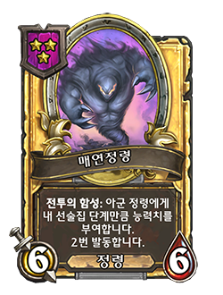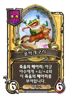 - [5단계, 야수] 복수 (2)와 죽음의 메아리: 다른 아군 야수에게 +6/+6을 부여합니다.