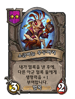 - [2단계, 멀록] 내가 멀록을 낸 후에, 다른 아군 멀록 둘에게 생명력을 +1 부여합니다.