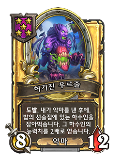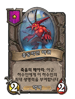 - [1단계, 악마] 죽음의 메아리: 아군 하수인에게 이 하수인의 최대 생명력을 부여합니다.