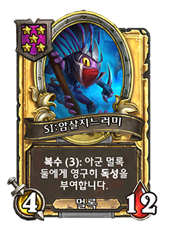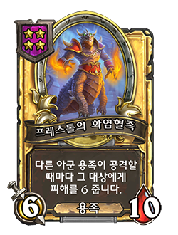 - [4단계, 용족] 다른 아군 용족이 공격할 때마다 그 대상에게 피해를 3 줍니다.