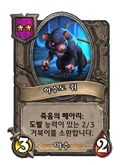 - [2단계, 야수] 죽음의 메아리: 아군 야수에게 +2/+2와 이 죽음의 메아리를 부여합니다.