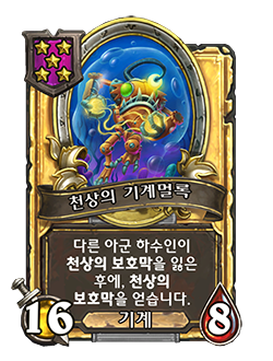 - [5단계, 기계] 아군 하수인이 천상의 보호막을 잃은 후에, 천상의 보호막을 얻습니다.