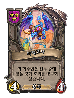 - [3단계, 용족] 이 하수인은 전투 중에 얻은 강화 효과를 영구히 얻습니다.