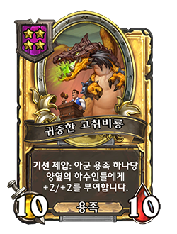 - [4단계, 용족] 기선 제압: 아군 용족 하나당 양옆의 하수인들에게 +1/+1을 부여합니다.