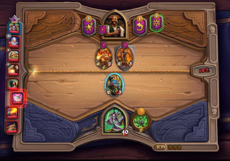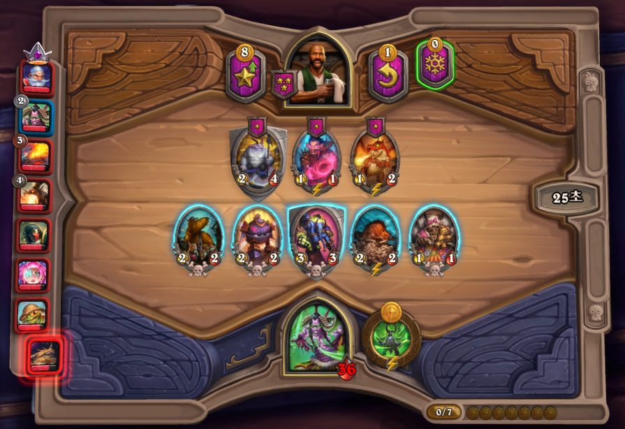 6턴 하수인 상점입니다. 청동감시자+ 버프가 세트로 나왔습니다. 필드도 적당히 채워서, 이제부터는 선공 이득을 꽤나 볼수 있었습니다.