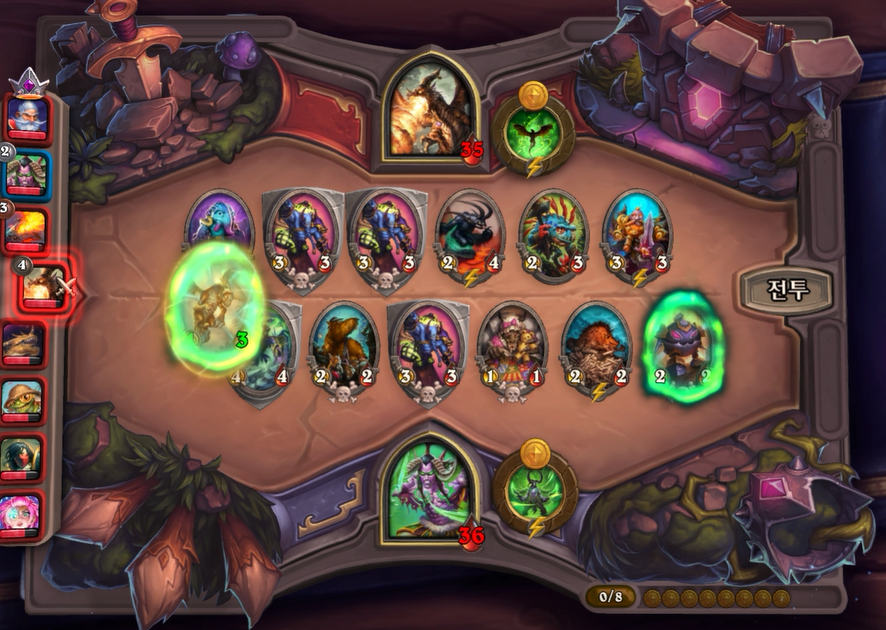 4턴 하수인 상점입니다. 콰광 로봇과 쥐떼를 구입했습니다. 2성 하수인 중에서 3대장이 2개나 떴네요. 이처럼 전반적으로 초반 하수인 운이 매우 좋은 편이었습니다.