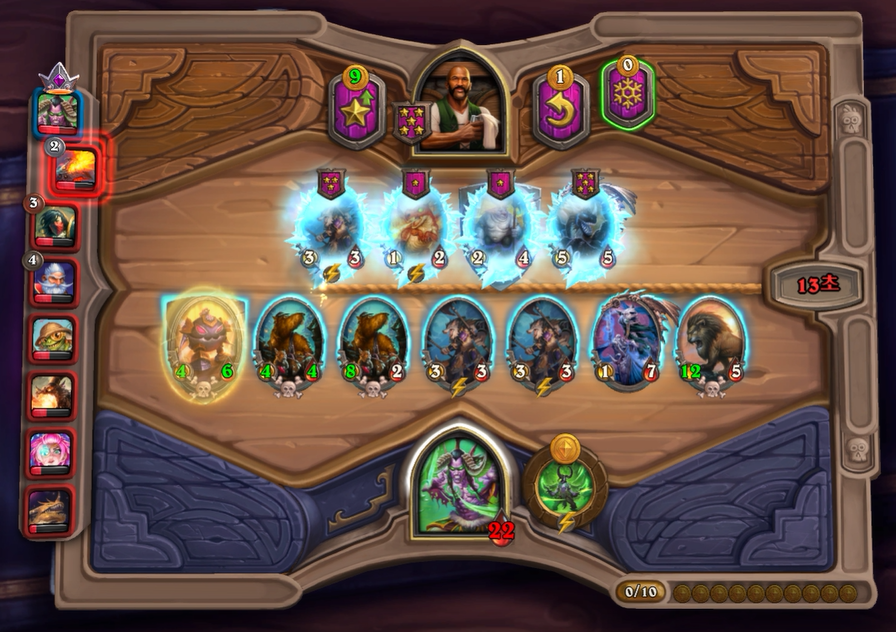 일리단의 영웅 능력은 기선제압: 가장 왼쪽과 가장 오른쪽에 있는 내 하수인들이 즉시 공격합니다. 이 때문에 일반적으로 오른쪽에 리븐데어 혹은 무리감시자 처럼 보호해야할 하수인 배치를 다시 생각해야합니다. 저는 일리단 야수덱을 하였고, 자세한 운영법은 스크린샷을 보면서 설명드리겠습니다!