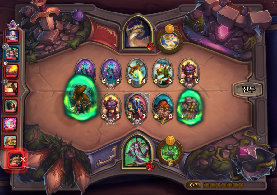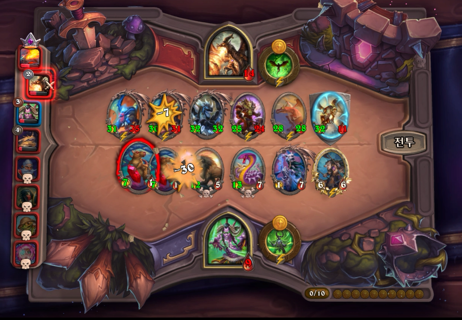 7턴 전투는 패배했지만, 그나마 멀록덱의 데미지가 약하기 때문에 30이상을 유지할 수 있었습니다.