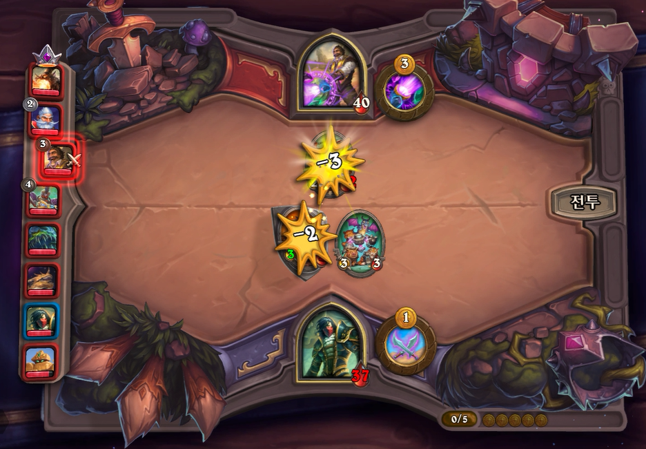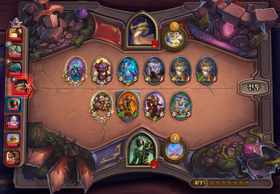 4턴 상대도 레벨 업+ 영웅 능력을 했네요. 이러면 제가 이겼어야하는데 아쉽게 무승부를 기록했습니다.