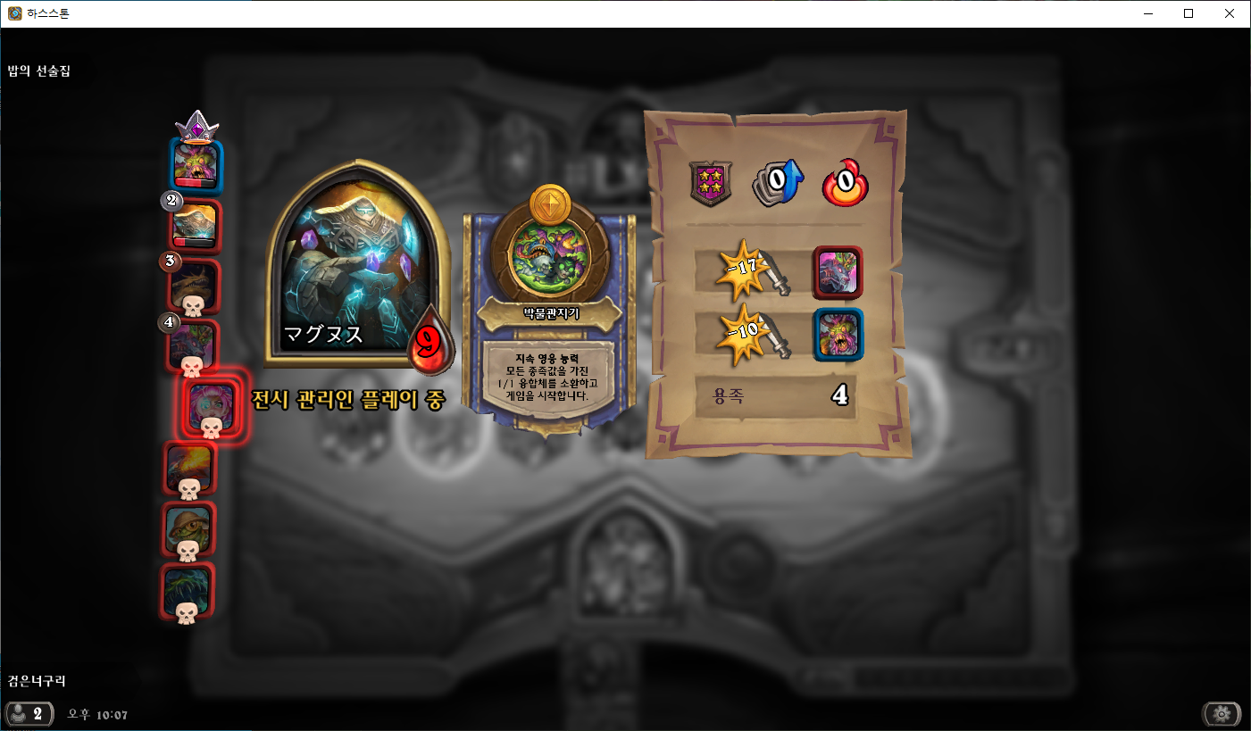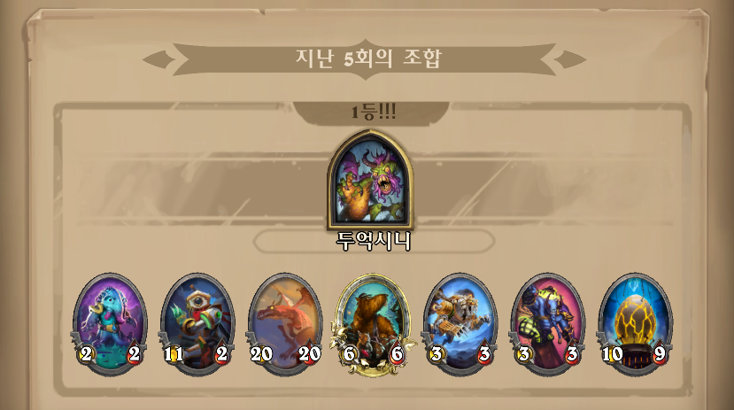 일반적으로, 전장에서 이 덱으로 1등은 절대 불가능합니다. 5성 하수인 없이 그리고 표범니나 악마간수가 저 스탯으로 있을수가 없죠. 이제부터 소개할 버그에 혹시 걸리면 운이 좋다고 생각하고 버티시면 될거 같습니다.