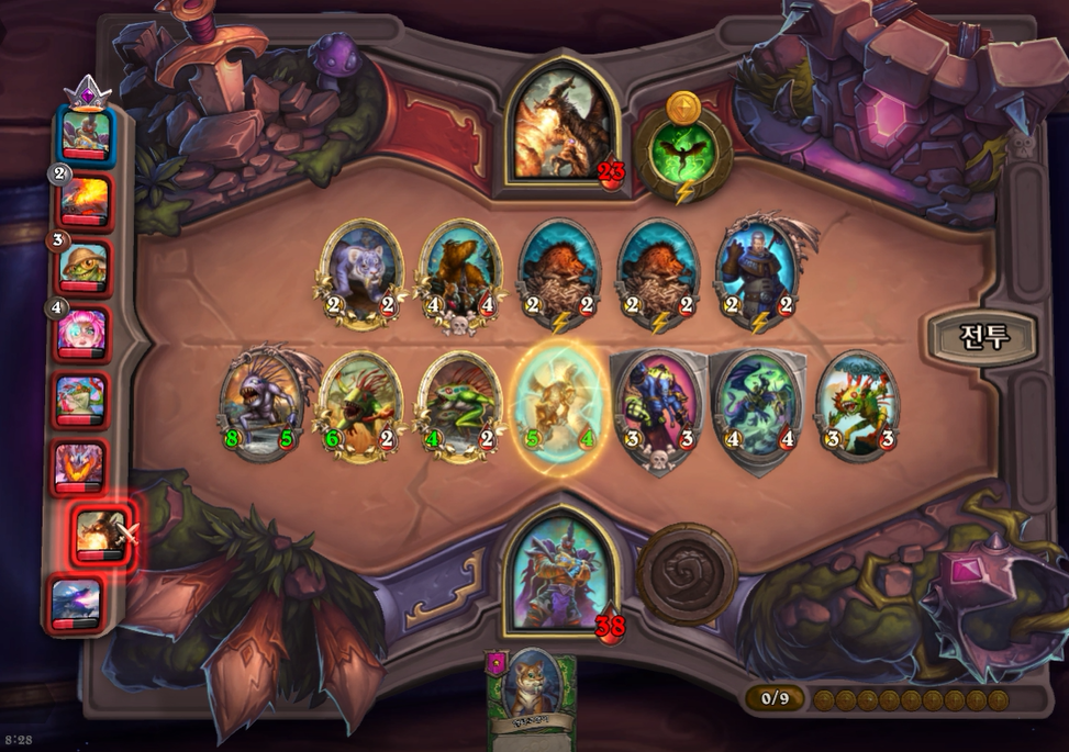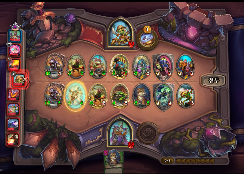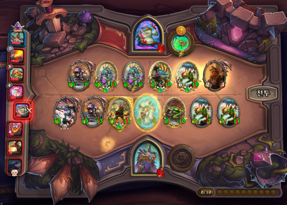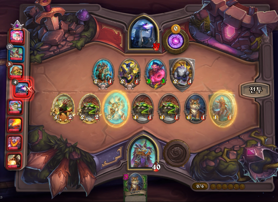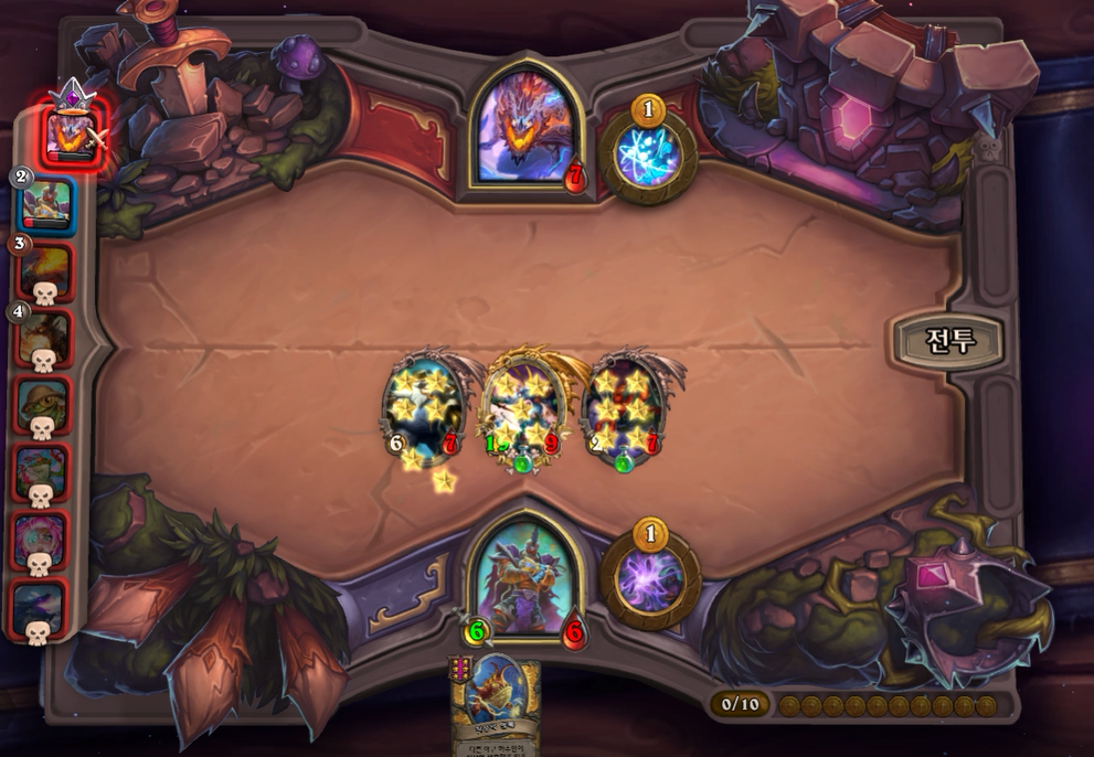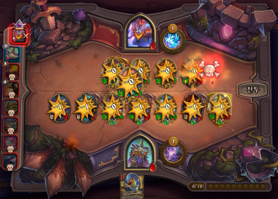 6턴 전투는 무승부를 기록했습니다. 제가 후턴 공격이었으면 거목눈 멀록을 가져오는 건데 선공이라 아쉽게 악마 간수를 가져왔네요!
