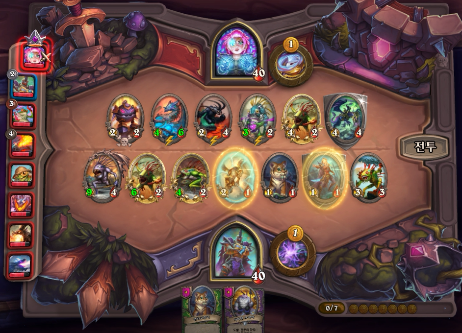 굳이 특정덱에 한정되서 플레이 할 필요 없이 가급적 뺏어오는 하수인과 상점 하수인들을 생각하면서 덱 조합을 맞추면 됩니다! 이제는 스크린 샷을 통해 매턴 플레이 설명을 해보겠습니다!