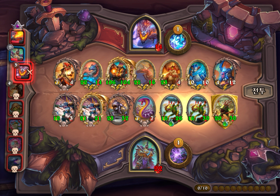 10턴 전투는 무난하게 이겼지만 바위웅덩이 멀록을 가져와서 아쉽네요. 브란가져왔으면 우승이 확실시 되는 상황이었는데, 너무 아까웠습니다.