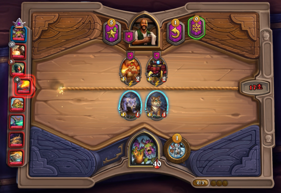 3턴 하수인 상점입니다. 아쉽게 토큰이 뜨지 않아 영웅 능력+ 동물원 로봇을 냈습니다. 필드가 매우 약하지만 상점운이 좋지 않아 어쩔수 없었습니다;;;