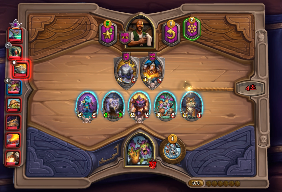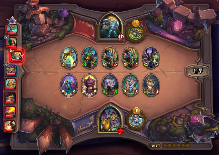 5턴 하수인 상점입니다. 국룰 3레벨을 찍고, 하수인 상점에서 그나마 쎈 문양 수호자를 구입했습니다.