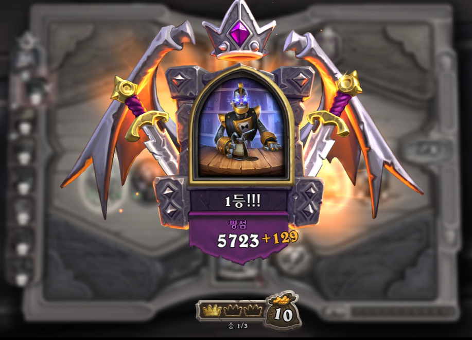 하지만! 충분히 바텐더의 장점을 살린다면 4등안에 들수 있다고 생각합니다. 이번에 아메리카 서버에서 4턴 타이밍에 빠른 3레벨 업을 하였고, 탄탄한 운영으로 1등을 해보았습니다.ㅎㅎ; 덱은 천보, 브란덱을 하였고, 자세한 운영법에 대해 스크란샷을 보면서 설명 드리겠습니다!