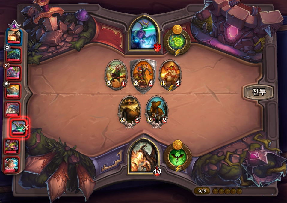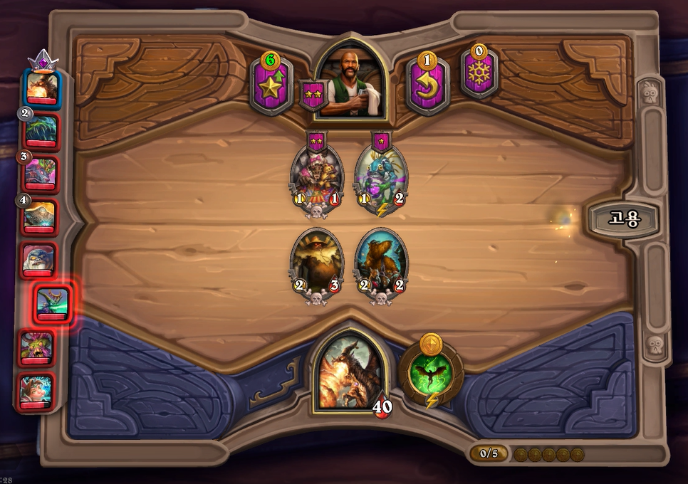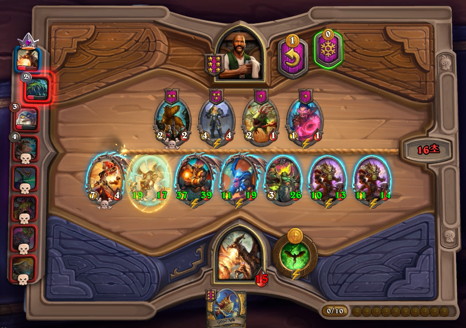 6턴 전투는 상대가 제루스를 샀거나 리롤로 망했거나 둘중하나인데, 그덕에 제가 이길 수 있었습니다.