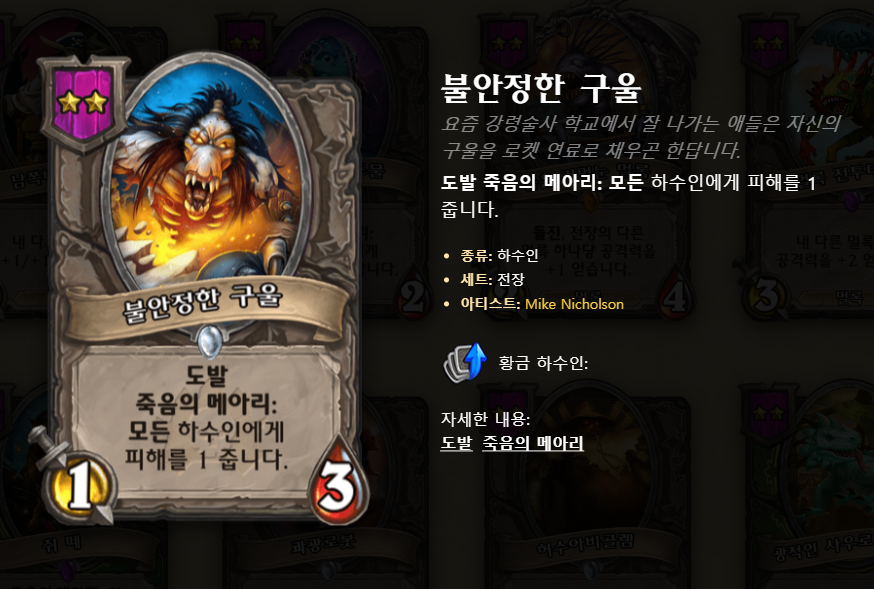 * 1성 하수인 중 3,4턴에 황금 카드 가치
