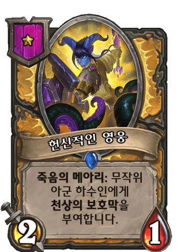 순수 악마 덱 같은 경우 요즘은 많이 없으나 잘 키운 황금 애호가, 국밥맨 등을 잡기 위해 맥스나 혹은 흉합체를 쓸수 있습니다.(참고로 흉합체 같은 경우 본인도 종족 포함이기 때문에 최소 1~6 번 까지 적응합니다. 브란이 있을 경우 2배로 최대 12번 적응) 하지만 상대가 헌신적인 영웅으로 천상의 보호막을 씌우면 역으로 카운터를 당할 수 있기 때문에 상대의 초상화를 보면서 배치하고, 용병으로 잠깐 쓰는 하수인을 구매해주시면 되겠습니다.