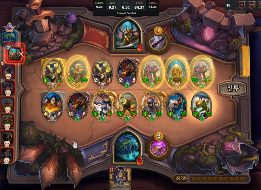 일반적으로 상대 덱을 카운터 치는 능력이 1,2등을 판가름할 수 있습니다. 각 덱 별 카운터 하수인들을 나열해보았습니다. 상대를 카운터 칠 수 있는 하수인은 전장 내에 3개 정도 있지만, 이 3개 하수인의 활용을 잘하면 단판 승부에서 1위를 할수 있는 전략이 됩니다. 물론 하수인이 안 뜨면 끝이지만, 가능성을 볼 수 있다는 점에서 의미가 있다고 생각합니다.