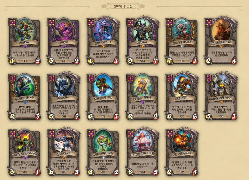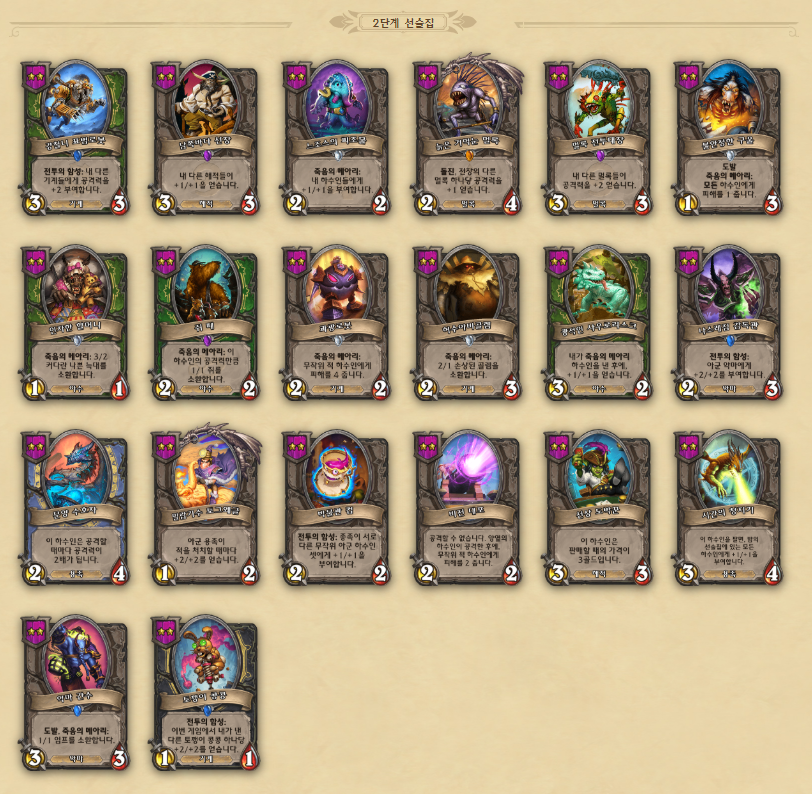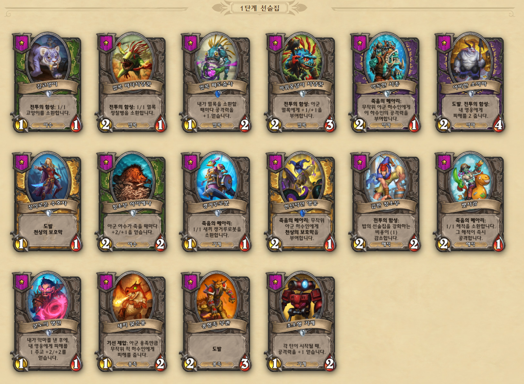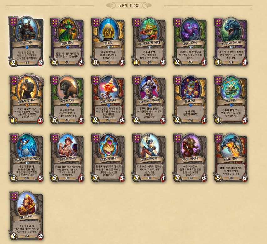영웅 능력 및 하수인 정보 링크 - https://playhearthstone.com/ko-kr/battlegrounds
