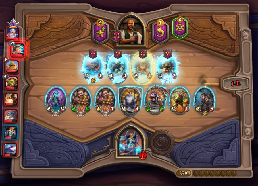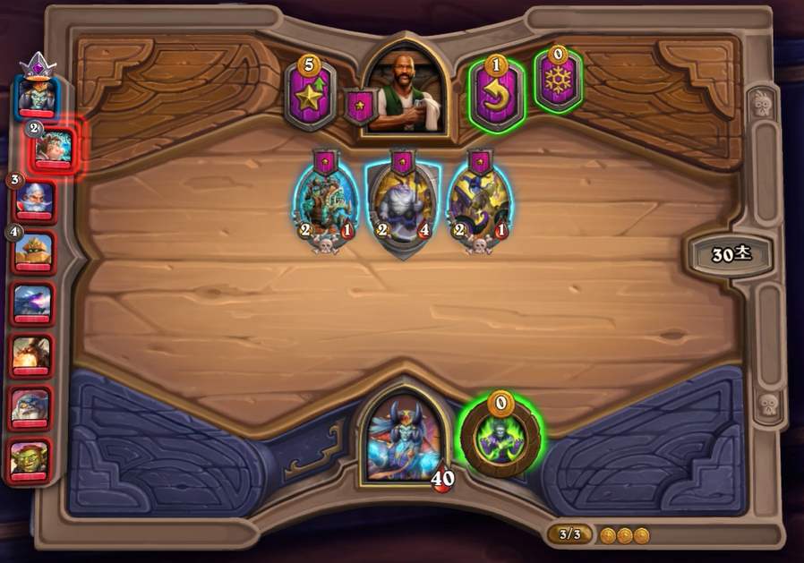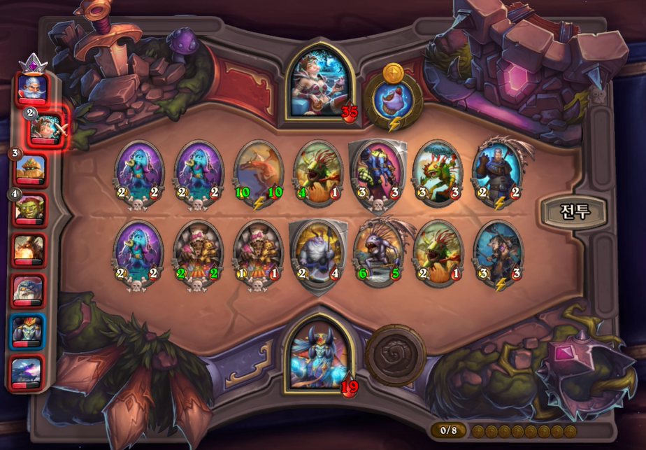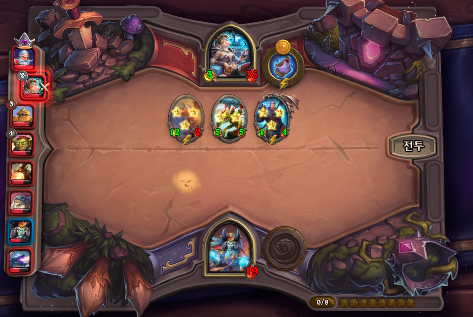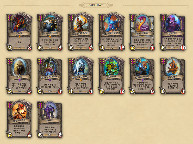 3) 첫 턴에는 3개 하수인 중 하나를 구매할 수 있습니다. 그리고 2,4,6 레벨을 찍을 때마다 선술집 상점에서 판매하는 하수인 수가 1개씩 추가됩니다.