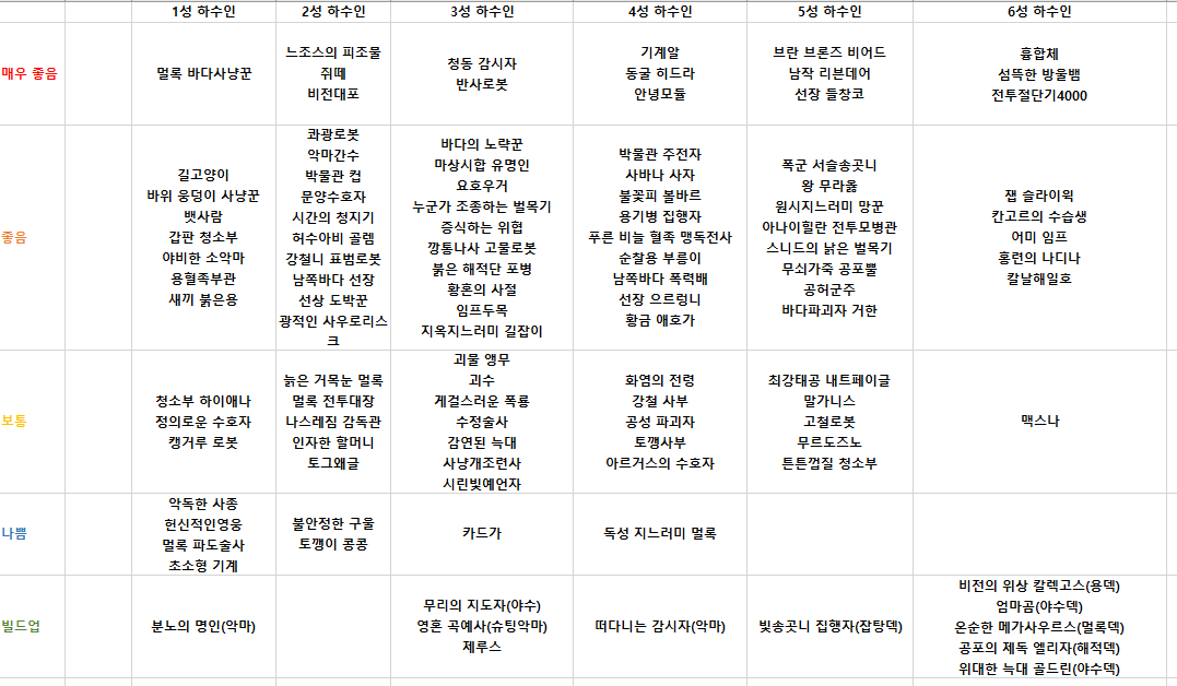 아래 링크를 통해 자세한 영웅 및 하수인 정보를 참고하시면 됩니다~!