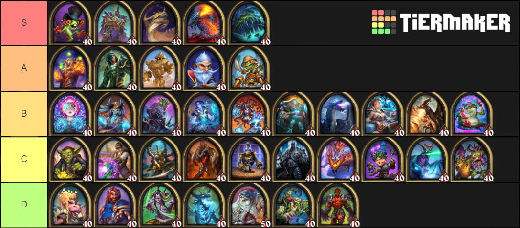 안녕하세요, 검은너구리입니다. 이번 포스팅은 신영웅이 등장함에 따라 티어리스트를 수정해보려고 합니다. 솔직히 하수인이 사우로리스크가 새로 생긴 것 외에 메타에 큰 변화가 없어 거의 신영웅 위주로 써보겠습니다. 신영웅들도 많이 플레이해보지는 않았지만, 다른 스트리머들의 플레이 영상이나 친구 플레이 관전을 통한 느낀 점 위주로 티어리스트를 작성하였습니다.