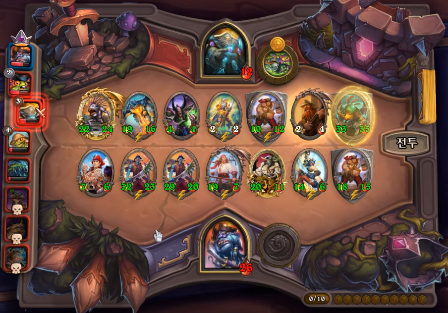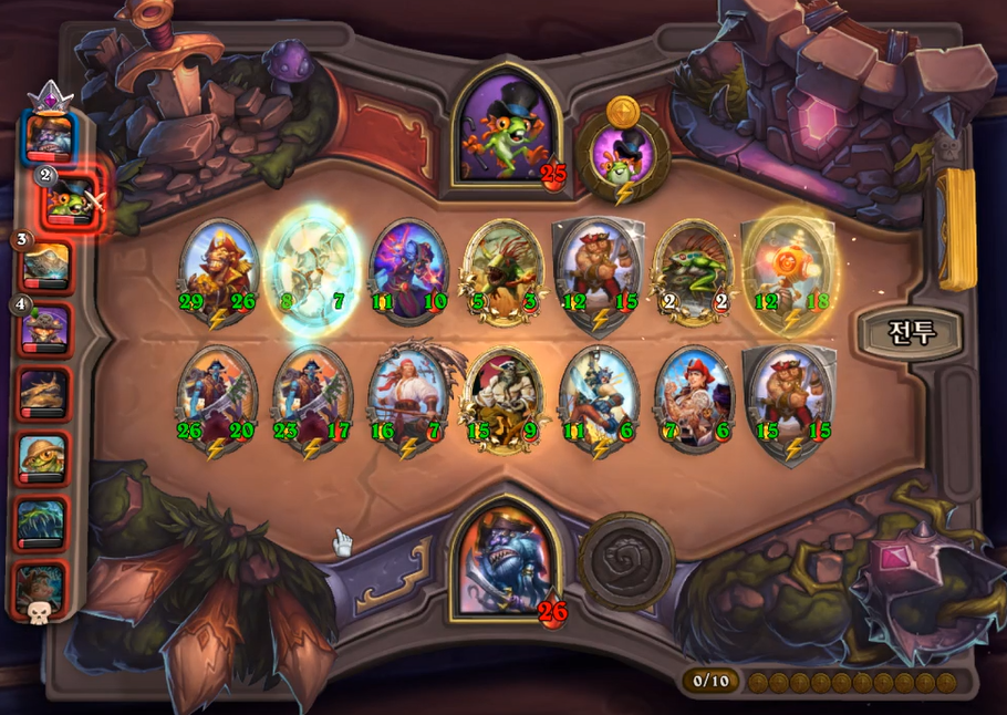 후반부 운영은 사실상 해적 사고 팔기를 반복하기 떄문에 생략하고 마지막 상점으로 넘어가겠습니다. 원래는 더미를 만나면 6 레벨을 찍으려고 했는데 다릴이 더미한테 죽으면서 아쉽게도 더미를 만나지 못했습니다... 그래도 나름 전체적으로 하수인들의 공격력을 많이 높였고, 특히 노략꾼을 많이 키웠는데, 상대가 굉장히 강력했습니다.